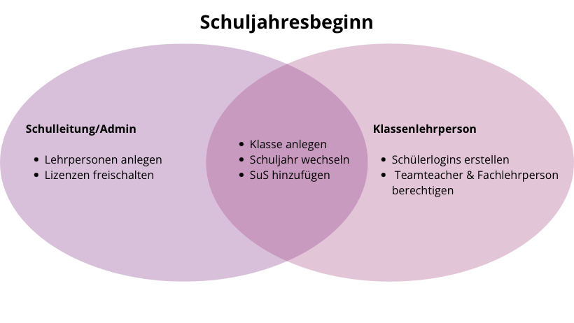 Das neue Schuljahr 2025/26 startet in unserem System Anfang August. In unserer Grafik finden Sie die notwendigen Schritte sowie Links zu den Anleitungen.